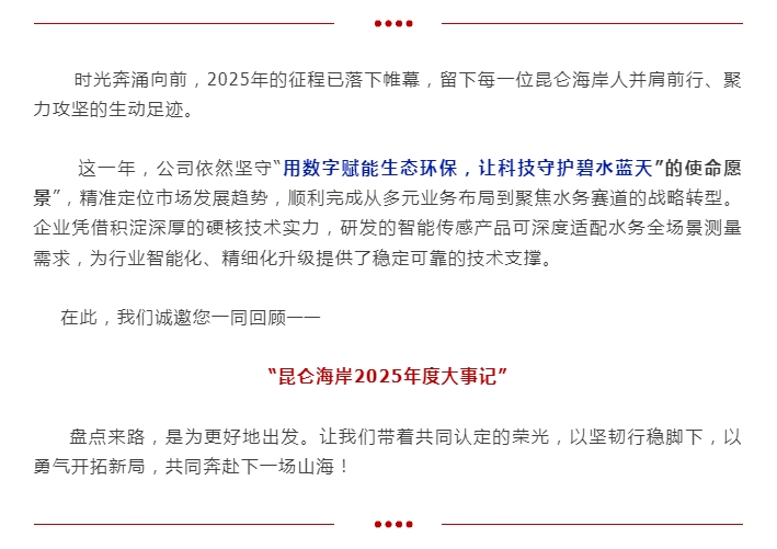 时光奔涌向前,2025年的征程已落下帷幕,留下每一位昆仑海岸人并肩前行、聚力攻坚的生动足迹。